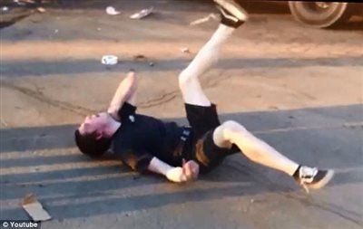 Όταν ένας αστυνομικός προσπαθεί να τον πλησιάσει, ο έφηβος επιτίθεται σε αυτόν και αρχίζει να τον κλωτσάει.