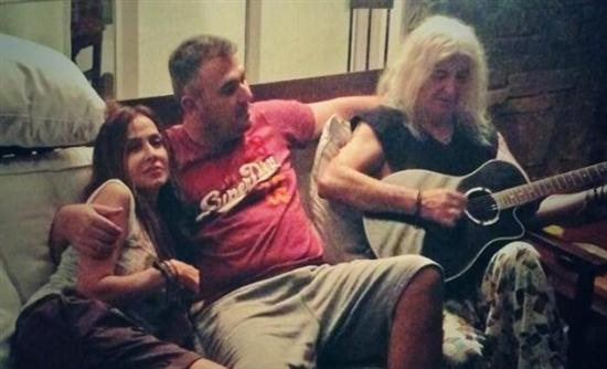 Στην φωτογραφία από την πρώτη πρόβα, που δημοσίευσε στο Ίντερνετ ο Αντώνης Ρέμος, βλέπουμε τον τραγουδιστή να κάθεται ανάμεσα στον Νίκο Καρβέλα και την Άννα Βίσση, την οποία και αγκαλιάζει!