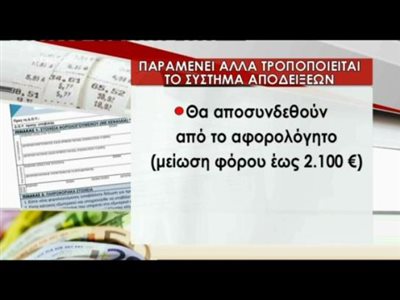 Το μόνο σίγουρο είναι ότι οι αποδείξεις θα αποσυνδεθούν από το αφορολόγητο, δηλαδή από την προβλεπόμενη μείωση φόρου έως 2.100 ευρώ, ενώ θα δοθούν κίνητρα για τη συλλογή τους, όπως η επιστροφή μέρους του ΦΠΑ στους καταναλωτές.