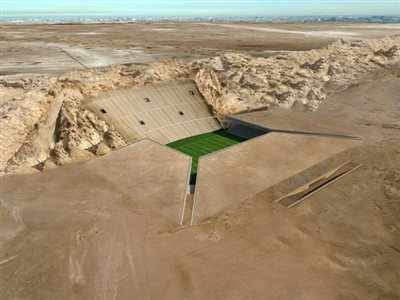 Στην πόλη Al Ain του Άμπου Ντάμπι ένα πρωτότυπο γήπεδο ποδοσφαίρου προετοιμάζεται από τους MZ Architects, οι οποίοι σχεδίασαν μια δομή απόλυτα προσαρμοσμένη στο ερημικό τοπίο. Το γήπεδο, έκτασης 200.000 τ.μ., δεσπόζει στο κέντρο του βουνού Jebel Hafeet και μοιάζει βυθισμένο στην άμμο. «Αναγνωρίζοντας την επιβλητικότητα αλλά και το δυναμισμό του τοπίου της περιοχής, το γήπεδο έπρεπε να αποτελεί αναπόσπαστο μέρος του περιβάλλοντος χώρου και σε καμία περίπτωση να μην τον προσπερνά…