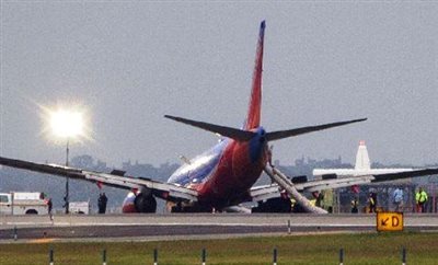 Πέντε άνθρωποι τραυματίστηκαν το απόγευμα της Δευτέρας στο αεροδρόμιο Λα Γκουάρντια της Νέας Υόρκης, όταν το ρύγχος ενός αεροσκάφους Boeing 737-700 της εταιρείας Σαουθουέστ, που μετέφερε 150 επιβάτες και μέλη του πληρώματος, κατέρρευσε στο διάδρομο προσγείωσης. Το αεροσκάφος εκτελούσε εσωτερική πτήση από το Νάσβιλ, προσγειώθηκε στο διάδρομο 4 και αφού έφτασε σε ασφαλή στάση, το ρύγχος του ακούμπησε βίαια στο έδαφος. Το πλήρωμα έδωσε εντολή στους επιβάτες να εγκαταλείψουν το αεροσκάφος, ενώ οχήματα έκτακτης ανάγκης εισήλθαν στην πίστα, σταματώντας τις εισερχόμενες πτήσεις με αποτέλεσμα το αεροδρόμιο να κλείσει. Η αεροπορική εταιρεία Σαουθουέστ, ο μεγαλύτερος εσωτερικός αερομεταφορέας των Ηνωμένων Πολιτειών, επιβεβαίωσε την κατάσταση έκτακτης ανάγκης στη Νέα Υόρκη και δεσμεύτηκε να παράσχει περαιτέρω λεπτομέρειες αργότερα.Το Εθνικό Συμβούλιο Ασφάλειας των Μεταφορών ενημερώθηκε για το περιστατικό και έστειλε ερευνητή για να εξετάσει τα αίτια του ατυχήματος. Το συμβάν στη Νέα Υόρκη ακολούθησε τη συντριβή ενός αεροσκάφους της νοτιοκορεάτικης Asiana στο Σαν Φρανσίσκο τον περασμένο μήνα όπου σκοτώθηκαν τρία άτομα και τραυματίστηκαν πάνω από 180 άνθρωποι.ΠΗΓΗ: ΑΠΕ-ΜΠΕ