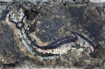 «Η αίθουσα των δράκων και τα δελφίνια» Η ανακάλυψη επιβεβαιώνει την παρουσία ενός από τα πιο «σπουδαία Ελληνιστικά ψηφιδωτά» , με έκταση περίπου, σύμφωνα με το Αποκάλυψη, 30 τετραγωνικών μέτρων.