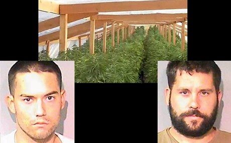 Στο κτήμα οι αστυνομικοί βρήκαν 1.200 δενδρύλλια μαριχουάνας, 17 όπλα και 4.000 δολάρια σε μετρητά.