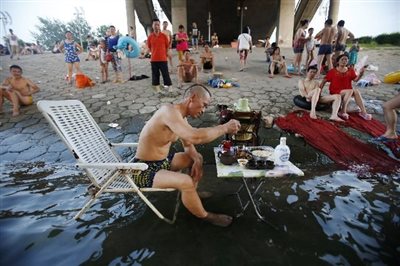 Οι Κινέζοι συνωστίζονται στις πισίνες- είναι πολύ χαρακτηριστική η φωτογραφία- αλλά και σε καταστήματα και σταθμούς μετρό που κλιματίζονται, αναζητώντας μία ανάσα δροσιάς.