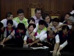 Σε ρινγκ μετατράπηκε η αίθουσα του Κοινοβουλίου της Ταϊβάν, καθώς οι βουλευτές διαφώνησαν μεταξύ τους σε πρόταση της κυβέρνησης, με αποτέλεσμα να σημειωθούν συμπλοκές μεταξύ των βουλευτών και να εκτοξευθούν καρέκλες και μπουκάλια Οι βουλευτές του Δημοκρατικού Κόμματος της Ταϊβάν, διαφώνησαν με την πρόταση του κυβερνώντος Εθνικιστικού Κόμματος για την κατασκευή και τέταρτου πυρηνικού εργοστασίου, με αποτέλεσμα να σημειωθούν άγρια επεισόδια μεταξύ των βουλευτών, ενώ κάποιοι έφτασαν στο σημείο να πετάξουν καρέκλες και μπουκάλια.