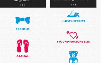 Για όσους θέλουν να χωρίσουν μέσω κινητού και δεν το θεωρούν εύκολο,υπάρχει και για αυτό το σκοπό εφαρμογή... Το BreakupText είναι μια εφαρμογή που γράφει ένα μήνυμα μέσα σε δευτερόλεπτα και το στέλνει στον και στην πρώην Η λειτουργία είναι απλή, η εφαρμογή σας ρωτά κάποιες ερωτήσεις για να μάθει το φύλο του χρήστη, το είδος της σχέσης και το λόγο του χωρισμού. Τότε συντάσσεται αυτόματα το μήνυμα και αποστέλλεται στο άτομο που έχετε επιλέξει, το οποίο μαθαίνει και τα μαντάτα.... Δείτε τις φωτογραφίες του whos, από την ειδική αυτή εφαρμογή...