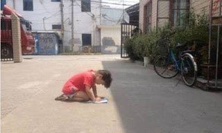 Μάλιστα τους ενημέρωνε για το πώς να προστατευθούν από τον καύσωνα. Στις 25 Ιουλίου η θερμοκρασία άγγιξε τους 39,3 βαθμούς κελσίου κι ενώ όλοι βρίσκονταν προστατευμένοι σε δροσερά μέρη, στον δρόμο του Χόνγκ ξινγκ είδαν ένα κοριτσάκι 8 ετών καθισμένο στα γόνατα του που επί 3 ώρες έλυνε ασκήσεις του σχολείου.