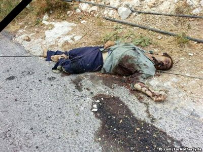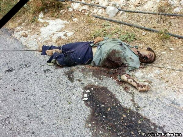 O Αφγανός τρομοκράτης "Najm al-Din Azad," δημοσίευσε στο λογαριασμό του στο twitter φωτογραφίες από νεκρούς πολίτες των χωριών της επαρχίας της Λατάκεια και επαίρεται ότι τους σκότωσε κόβοντάς τους το λαιμό!
