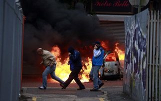 Καμένα αυτοκίνητα και μπάζα ήταν το σκηνικό στο κέντρο της πόλης, ενώ προκλήθηκαν ζημιές σε βιτρίνες καταστημάτων. Η αστυνομία δήλωσε πως επτά άνθρωποι συνελήφθησαν.