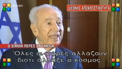 Το πλέον αποκαλυπτικό απόσπασμα από τη συνέντευξη που παραχώρησε ο Πρόεδρος του Ισραήλ Σίμον Πέρες στο Μέγκα, λίγο πριν την επίσημη επίσκεψή του στη χώρα μας!
