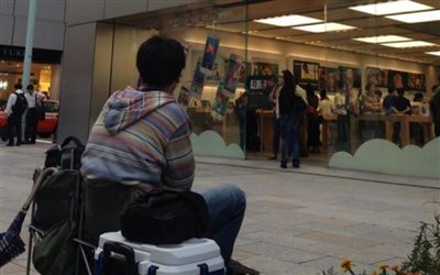 Ο πρώτος άνθρωπός που θα έχει την τύχη να αγοράσει πρώτος το νέο μοντέλο στο Τόκιο,βρίσκεται ήδη έξω από το κατάστημα και έχει κατασκηνώσει στην κυριολεξία!