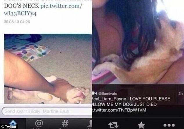 Το κορίτσι, έστειλε ένα απελπισμένο tweet στους πέντε τραγουδιστές, δύο βδομάδες πριν λέγοντας«Ακολουθήστε με στο Twitter αλλιώς θα σπάσω το λαιμό του σκυλιού μου».