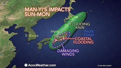 Ο ισχυρός τυφώνας Μαν-γι κατευθύνεται σήμερα στην Ιαπωνία και η μετεωρολογική υπηρεσία εξέδωσε προειδοποιήσεις για καταρρακτώδεις βροχές, πλημμύρες και ισχυρούς ανέμους, καθώς η καταιγίδα αναμένεται να σαρώσει τη Δευτέρα την περιοχή της Φουκουσίμα.