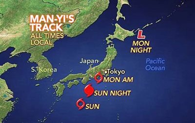 Ο ισχυρός τυφώνας Μαν–γι πέρασε το πρωί της Δευτέρας από τη νότια Ιαπωνία με βροχοπτώσεις «άνευ προηγουμένου» σε πολλές περιοχές, ενώ σύμφωνα με τις προβλέψεις τη δύναμη του αναμένεται να δοκιμάσει και η ευάλωτη περιοχή της Φουκουσίμα όπου βρίσκεται το πυρηνικό εργοστάσιο.