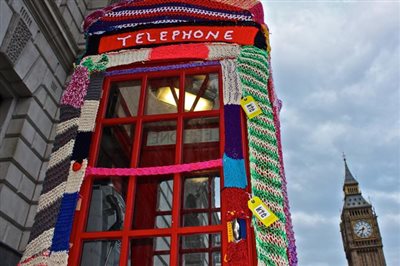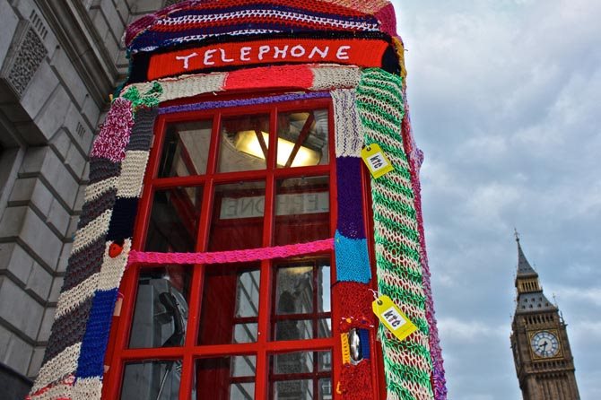 Οι Knit The City είναι μια κολεκτίβα γυναικών με εξωραιστικές προθέσεις: παίρνουν χοντρές βελόνες, κάμποσες μπάλες μαλλιού και ξεχύνονται στους δρόμους του Λονδίνου. Ένα πορτοκαλί καλαμάρι περνιέται κασκόλ στο άγαλμα του Δαρβίνου στο Μουσείο Φυσικής Ιστορίας. Ο Πρίγκηπας Γουίλιαμ και η Κέιτ κρέμονται μάλλινοι, και πιο ερωτευμένοι από ποτέ μάλλον, στο συντριβάνι της Picadilly Square. Ο σταθμός του Brixton γεμίζει πλεκτά λουλουδάκια και ήλιους και το κλασικό κόκκινο phone booth απέναντι από το Big Ben αποκτά μια χρωματιστή μάλλινη επένδυση για τα πρώτα κρύα. Ντυμένα τρέχουν και τα λονδρέζικα λεωφορεία, οι τηλεφωνικοί θάλαμοι γίνονται πολύχρωμοι και η πόλη φωτίζεται.