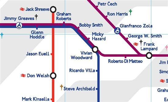 Το μετρό του Λονδίνου είναι το πρώτο σιδηροδρομικό δίκτυο στον κόσμο καθώς αυτές τις ημέρες κλείνει τα 150 χρόνια λειτουργίας του! Όμως κοινά γενέθλια έχει και η ποδοσφαιρική ένωση της Μ. Βρετανίας. Έτσι, οι δύο ομοσπονδίες αποφάσισαν να τα γιορτάσουν μαζί με μία έξυπνη κίνηση. Οι σταθμοί του μετρό επονομάστηκαν από τους διασημότερους Βρετανούς ποδοσφαιριστές, οπότε το κοινό έχει τη δυνατότητα να... θαυμάσει την ανανεωμένη εμφάνιση του χάρτη του σιδηροδρομικού δικτύου!