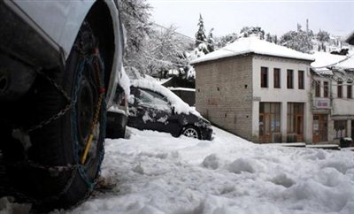Με αντιολισθητικές αλυσίδες στη Βόρεια Ελλάδα