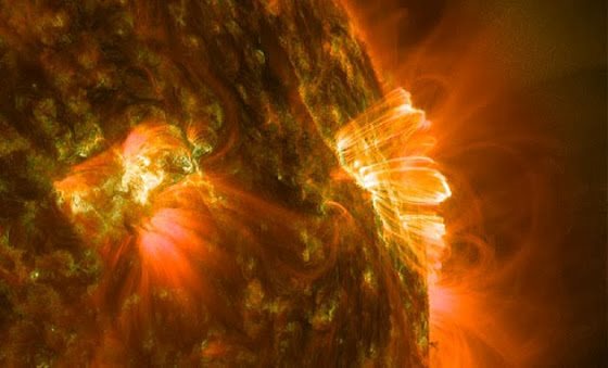 Μια αψίδα φωτιάς, αρκετά μεγάλη για να δρασκελίσει την απόσταση Γης-Σελήνης, σκίζει την ατμόσφαιρα του Ήλιου και τινάζεται στο διάστημα.