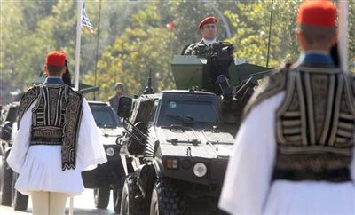 Το 2010 με απόφαση της πολιτικής και στρατιωτικής ηγεσίας του υπουργείου Εθνικής Άμυνας αποσύρθηκαν από τις παρελάσεις τα μηχανοκίνητα τμήματα των ενόπλων δυνάμεων. Σήμερα, τρία χρόνια μετά, τανκς και μαχητικά αεροπλάνα θα κάνουν την εμφάνισή τους στη Θεσσαλονίκη, μαζί με... περισσότερους από 2.000 αστυνομικούς, οι οποίοι θα βρίσκονται σε επιφυλακή προκειμένου να «εμποδίσουν» τυχόν επεισόδια. Αυξημένα τα μέτρα ασφαλείας και στην μαθητική παρέλαση στην Αθήνα.