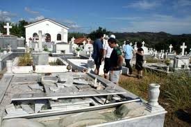 Μετέβησαν στο κοιμητήριο εξοπλισμένες με γεννήτρια, φως, φτυάρια και τσάπες και, αφού μετακίνησαν τη μαρμάρινη πλάκα του τάφου, άρχισαν να σκάβουν, μέχρι που βρήκαν τα οστά.