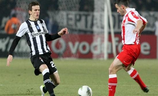 Η απάντηση του ΠΑΟΚ ήρθε με σουτ του Γκαρσία στο οριζόντιο δοκάρι του Μέγιερι, στο 29’.
