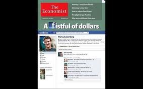 Στο πρωτοσέλιδο του Economist, παρουσιάζεται το wall του Ζάκερμπεργκ στο οποίο υποτίθεται ότι γράφει: «Ήλθον, είδον, ενίκησα!! Είμαι ήδη πλουσιότερος από τον Μπιλ (Γκέιτς); lol».