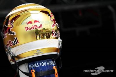 Ο Σεμπάστιαν Φέτελ σύμφωνα με τις τελευταίες πληροφορίες, θα τρέξει στο γκραν πριν του Αμπού Ντάμπι με κράνος που θα κοσμείται από φύλλα χρυσού 24άρων καρατίων! Το κράνος του τέσσερις φορές πρωταθλητή κόσμου, σχεδίασε ο Γιές Μάνσερ. Μάλιστα για να φτιάξει το συγκεκριμένο έργο, ο σχεδιαστής χρειάστηκε δυο ημέρες. Το μόνο σίγουρο είναι πως... ο Φέτελ θα γυαλίζει κάτω από το φως των προβολέων στο νυχτερινό γκραν πριν του σιρκουΐ... onsports