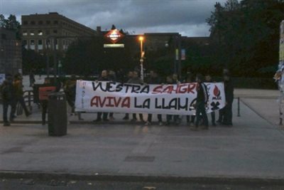 Περίπου 15 άτομα που δήλωσαν οπαδοί της Χρυσής Αυγής, εισέβαλαν το απόγευμα της Δευτέρας στο τμήμα Ιστορίας του Πανεπιστημίου της Μαδρίτης και σήκωσαν ένα πανό με αφορμή τη δολοφονία του Γιώργου Φουντούλη και του Μανώλη Καπελώνη, στο οποίο είχαν γράψει στα ισπανικά «Το αίμα σας ζωντανεύει τη φλόγα».