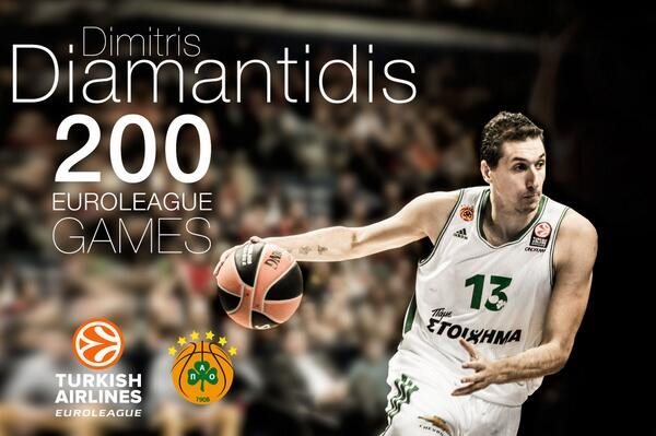Συγχαρητήρια στον αρχηγό του Παναθηναϊκού, Δημήτρη Διαμαντίδη έδωσε η Ευρωλίγκα , καθώς ο Έλληνας γκαρντ έφτασε τις 200 συμμετοχές στην κορυφαία διασυλλογική διοργάνωση.