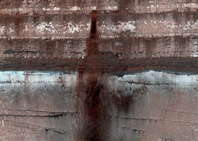 Μπορεί ο πλανήτης Άρης να είναι γεωλογικά ανενεργός, αυτό όμως δεν σημαίνει πως δεν συμβαίνει τίποτε στην επιφάνειά του. Οι αλλαγές των εποχών στον κόκκινο πλανήτη μερικές φορές δημιουργούν κάποιες πολύ δραστικές αλλαγές στο τοπίο, όπως αυτό που αποτύπωσε η κάμερα HiRISE (High Resolution Imaging Science Experiment) του Mars Reconnaissance Orbiter Όταν αυξάνεται η θερμοκρασία από το φως του ήλιου την άνοιξη, στην περιοχή του νότιου πόλου, εξατμίζονται τα στρώματα των πάγων του νερού και του διοξειδίου του άνθρακα δημιουργώντας τους καταρράκτες χώματος και σκόνης που βλέπουμε στην παραπάνω εικόνα. Στο βίντεο που ακολουθεί περιγράφονται οι διαδικασίες που δημιουργούν τα παραπάνω φαινόμενα: