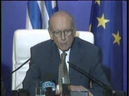 Τότε είχε πει χαρακτηριστικά «Βρίσκω ότι πάμε σ ένα είδος συρρίκνωσης της εθνικής δύναμης αλλά όχι στο βωμό μιας συλλογικής δημοκρατικής διαδικασίας. Στο βωμό των κρίσεων και των συμφερόντων. Συμφερόντων, το λέγω, ρητά... δεν θέλω ν' αποκαλύψω ονόματα. Σας λέγω όμως ότι εδώ...υπάρχει σαφές σχέδιο για τη μηδενοποίηση των εθνικών κυβερνήσεων οι οποίες δεν θα μπορούν να παίξουν δημοκρατικά αποτελεσματικό ρόλο, αλλά θα υπόκεινται στις κατευθύνσεις που μας δίνει το διευθυντήριο...».