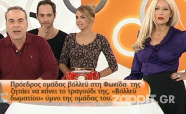 Γι' αυτό το λόγο, ο Φώτης Σεργουλόπουλος κάλεσε τη Χρύσπα στο τηλέφωνο και υποκρινόμενος τον πρόεδρο της γυναικείας ομάδας βόλεϊ της Άμφισσας, της ζήτησε να κάνουν το τραγούδι ύμνο της ομάδας και η ίδια να πάει να το τραγουδίσει στον τελικό, όπως η Madonna στο Super Bowl! Θα έπρεπε μάλιστα να της πει πέντε φορές τη φράση «και αν μας βοηθήσεις, όλη η Φωκίδα, Άμφισσα, Ιτέα, Γαλαξείδι θα σε ψηφίσει στο Dancing μονοκούκι».
