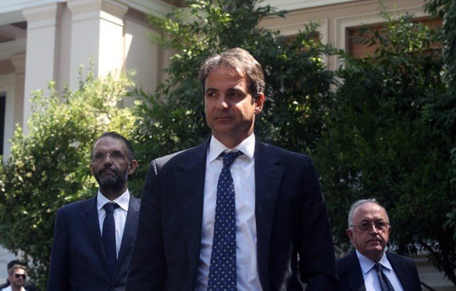 Μόλις ο Κυριάκος Μητσοτάκης αποβιβάστηκε από το όχημά του στη Σταδίου έγινε αντιληπτός από τους σχολικούς φύλακες οι οποίοι άρχισαν να τον φωνάζουν "αλήτη".