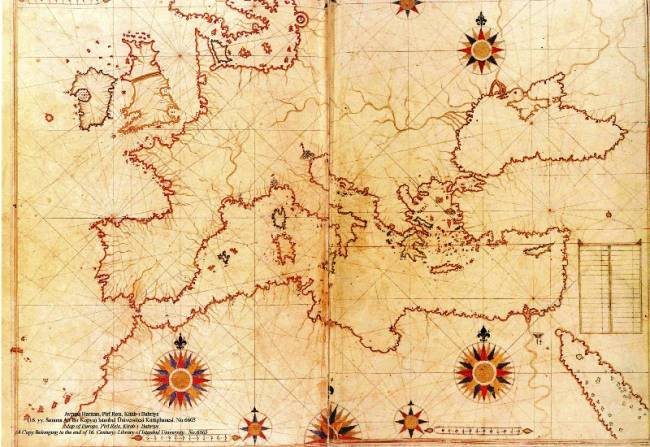 Σε διαστάσεις περίπου 60×86 εκατοστά, ο Τούρκος ναύαρχος Πίρι Ρέις είχε ζωγραφίσει το 1513 τον χάρτη του κόσμου και είχε συμπεριλάβει την Πορτογαλία, την Ισπανία, τη δυτική Αφρική, τον κεντρικό και νότιο Ατλαντικό, την Καραϊβική, το ανατολικό μισό της νότιας Αμερικής και ένα μέρος της Ανταρκτικής, απαλλαγμένης όμως από τα στρώματα πάγου.