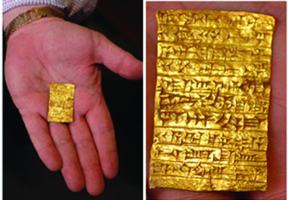 Σύμφωνα με τους διαχειριστές του κληροδοτήματος του Ρίβεν Φλάμενμπαουμ, ο επιζών του Ολοκαυτώματος απέκτησε τη χρυσή ασσυριακη πλάκα, μεγέθους περίπου 5 εκατοστών, ανταλλάσσοντας την με τσιγάρα με έναν Ρώσο στρατιώτη, στο τέλος του πολέμου.