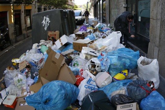 Οι εργαζόμενοι στις εταιρίες οι οποίες έχουν αναλάβει τις υπηρεσίες καθαρισμού των δρόμων και των κήπων της ισπανικής πρωτεύουσας των 3,2 εκατ. κατοίκων είχαν κηρύξει απεργία επ' αόριστον από την 5η Νοεμβρίου διαμαρτυρόμενοι εναντίον ενός σχεδίου αναδιάρθρωσής τους που προέβλεπε την κατάργηση 1.134 θέσεων εργασίας από τις συνολικά περίπου 7.000, πέραν των 350 που είχαν ήδη καταργηθεί τον Αύγουστο, καθώς και την μείωση των μισθών τους κατά έως και 40%.