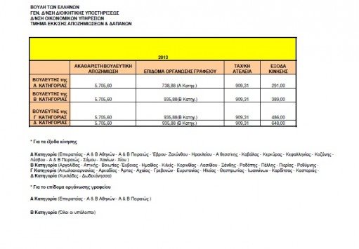 Επίσης, δεν αναγράφονται πουθενά οι ατέλειες στα κινητά και σταθερά τους τηλέφωνα, τα αεροπορικά εισιτήρια, οι δωρεάν διελύσεις από τα διόδια για τους βουλευτές της επαρχίας, αλλά και τα αυτοκίνητα που τους διαθέτει το κοινοβούλιο. Πάντως, ο προϋπολογισμός της Βουλής για το 2014 με όλα τα προκλητικά παραπάνω προνόμια ψηφίστηκε από τους βουλευτές της Νέας Δημοκρατίας και του ΠΑΣΟΚ. Αίσθηση από την τοποθέτηση Μεϊμαράκη