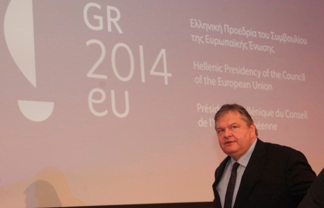 Παρουσιάστηκε σήμερα σε ειδική εκδήλωση στο Αμφιθέατρο «Γιάννος Κρανιδιώτης» το λογότυπο της Ελληνικής Προεδρίας του Συμβουλίου της Ε.Ε. από τον αντιπρόεδρο της Κυβέρνησης και Υπουργό Εξωτερικών, Ευάγγελο Βενιζέλο.