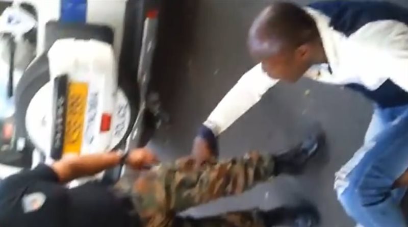 Αστυνομικός της κυπριακής ΜΜΑΔ (Μηχανοκίνητη Μονάδα Άμεσης Δράσης), στη προσπάθεια του να συλλάβει αλλοδαπό και να του περάσει χειροπέδες κάθεται πάνω στο πόδι του και του το σπάει.