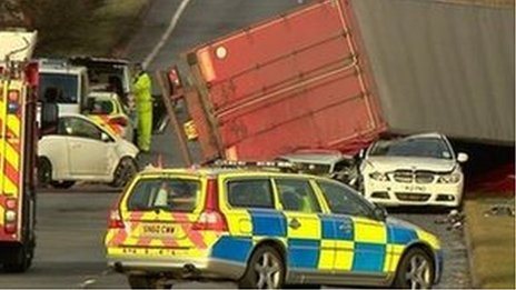 Ο οδηγός του φορτηγού σκοτώθηκε όταν το όχημά του έπεσε πάνω σε δυο αυτκίνητα κοντά στο Εδιμβούργο. Τουλάχιστον δυο άνθρωποι τραυματίσθηκαν από την πτώση δέντρων.