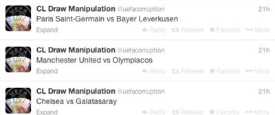 Σύγχυση στο φίλαθλο κοινό, αλλά και ενθουσιασμό στους λάτρεις της συνωμοσίας, έχει προκαλέσει λογαριασμός του Twitter που ανάρτησε σχεδόν μια μέρα νωρίτερα, τα αποτελέσματα της χθεσινής κλήρωσης του Champions League για τη φάση των 16!!! Όπως χαρακτηριστικά αναφέρει ο εν λόγω λογαριασμός, θέλει να αποδείξει ότι όλα είναι στημένα και χειραγωγημένα, ακόμα και στις τάξεις της UEFA. Δείτε την ανάρτηση που έγινε σχεδόν 24 ώρες πριν την επίσημη κλήρωση.