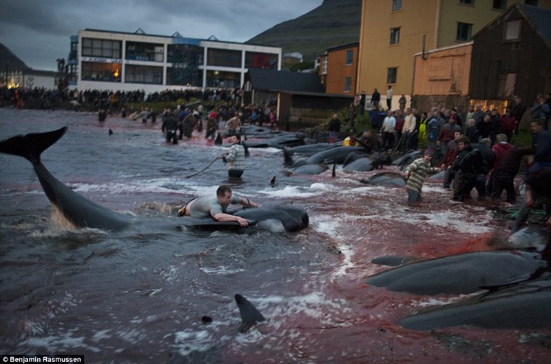 Αποτροπιασμό προκαλούν οι εικόνες που έρχονται από την ετήσια σφαγή φαλαινών στα νησιά Faroe, που απέχουν 200 μίλια από τις ακτές της Σκοτίας.Για περισσότερα από 400 χρόνια οι κάτοικοι της περιοχής προχωρούν στην εκτέλεση των ζώων, διαιωνίζοντας αυτήν την αιματοβαμμένη παράδοση. Το κυνήγι πραγματοποιείται κάθε καλοκαίρι και μετά το τέλος του, το κρέας των φαλαινών, καθώς επίσης και το λίπος τους κατανέμεται στα μέλη της κοινότητας.Όπως είναι αναμενόμενο, ουκ ολίγες φιλοζωικές οργανώσεις έχουν εκφράσει έντονα την αντίθεσή τους σε αυτήν την πρακτική.