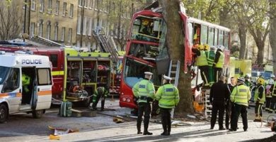Μετά την κατάρρευση της οροφής του θεάτρου Apollo, ένα αστικό λεωφορείο προσέκρουσε σε δέντρο το απόγευμα της Παρασκευής στο Κένινγκτον του νότιου Λονδίνου, με αποτέλεσμα να τραυματιστούν 32 άνθρωποι, επτά εκ των οποίων σοβαρά. Μια 19χρονη και ένας άνδρας ήταν οι τελευταίοι που απεγκλωβίστηκαν, και είναι και αυτοί που βρίσκονται σε σοβαρότερη κατάσταση. Μέχρι στιγμής, η αστυνομία δεν γνωρίζει επακριβώς το αίτιο του ατυχήματος, αλλά εξετάζει τις κάμερες ασφαλείας που υπάρχουν στην περιοχή. Στο μεταξύ, στους 75 ανήλθε ο αριθμός των τραυματιών από την κατάρρευση της οροφής του ιστορικού θεάτρου στο Λονδίνο, κατά τη διάρκεια παράστασης το βράδυ της Πέμπτης. Το θέατρο κτίστηκε το 1901.