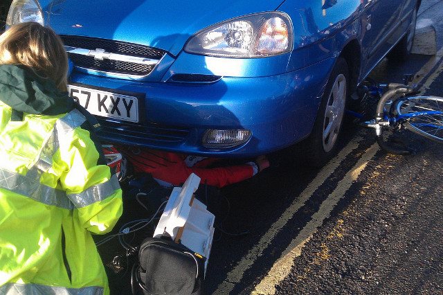 Το περιστατικό συνέβη στο δυτικό Σάσεξ, μία ώρα έξω από το Λονδίνο και σε κεντρικό δρόμο. Μάλιστα ο άτυχος ποδηλάτης πέρασε 30 τρομακτικά λεπτά κάτω από τις ρόδες του αυτοκινήτου.