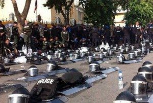 Πόσο διαφορετική μπορεί να είναι η αντιμετώπιση διαδηλωτών σε όλο τον κόσμο… Την ίδια ώρα που σε «εξελιγμένη» χώρα της Δύσης (ονόματα δε λέμε) οι αστυνομικές δυνάμεις δέρνουν συνταξιούχους και παιδάκια και ρίχνουν ληγμένα χημικά σε οικογένειες, στην Ταϊλάνδη οι ένστολοι σε διαδήλωση κατά της πολιτικής διαφθοράς (σας θυμίζει τίποτα αυτό;;) συμπαραστέκονται ειρηνικά και με τρομερά συμβολικό τρόπο στους διαδηλωτές εναποθέτοντας κράνη και ασπίδες στο έδαφος. Τα συμπεράσματα δικά σας… athensmagazine