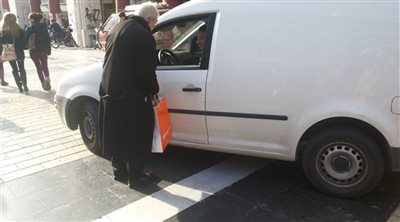 Με την απουσία της δημοτικής αστυνομίας μετά την κατάργησή της να έχει κάνει το κυκλοφοριακό πρόβλημα στο κέντρο της πόλης ανυπόφορο, κάποιος έπρεπε να αναλάβει δράση για τα αυτοκίνητα που παρκάρουν όπου βρουν. Αποφάσισε λοιπόν να το κάνει ο ίδιος ο δήμαρχος Θεσσαλονίκης! Ο Γ. Μπουτάρης περπατώντας στον πεζόδρομο της Αριστοτέλους πριν από λίγο αντίκρισε ένα λευκό βανάκι πάνω στο πλακόστρωτο όπως βλέπετε στις φωτογραφίες. Σταμάτησε και σε ρόλο δημοτικού αστυνομικού ρώτησε τον οδηγό για ποιο λόγο βρισκόταν στον πεζόδρομο. “Έχω δουλειά” απάντησε ο νεαρός και πριν προλάβει να συνεχίσει ο δήμαρχος Θεσσαλονίκης βγάζει από την τσέπη του παλτού του ένα από τα γνωστά αυτοκόλλητα που χρησιμοποιούν οι “ακτιβιστές των πεζοδρομίων” στην πόλη και γράφουν “Είμαι γάιδαρος παρκάρω όπου βρω” και το κολλάει στη μέση του παρπρίζ του μπροστά στα έκπληκτα μάτια του οδηγού, της κοπέλας του και πλήθος περαστικών. Μάλιστα ο Γ. Μπουτάρης δεν σταμάτησε εκεί. Bλέποντας λίγο πιο κάτω άλλο ένα φορτηγάκι παρκαρισμένο στον πεζόδρομο ζήτησε τον λόγο από τον οδηγό και όταν εκείνος του είπε ότι ξεφορτώνει εμπορεύματα για κάποιο κατάστημα, ο δήμαρχος πήγε στο ίδιο το κατάστημα για να επαληθεύσει τα λεγόμενά του!