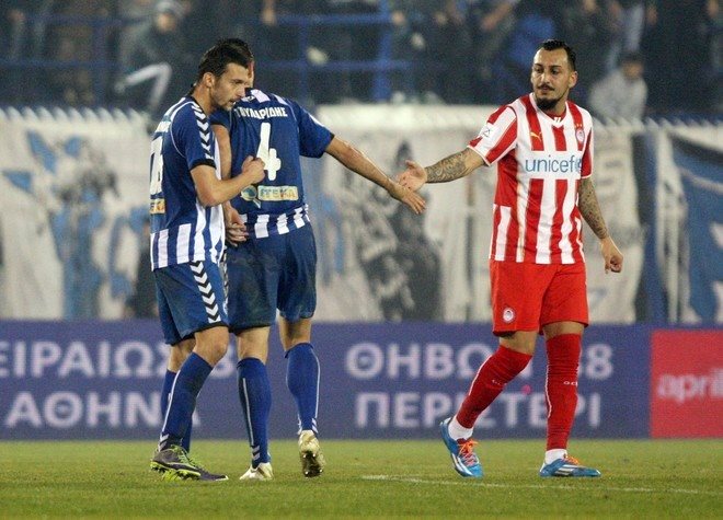 Μεγαλύτερη στιγμή για τον Ολυμπιακό στο 69ο λεπτό με τον Μανιάτη να βλέπει την μπάλα να σταματά στο δοκάρι μετά την κεφαλιά που έπιασε.