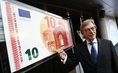 Το νέο χαρτονόμισμα των 10 ευρώ παρουσίασε σήμερα η Ευρωπαϊκή Κεντρική Τράπεζα, το οποίο έχει πολλά κοινά με αυτό που εκδόθηκε για πρώτη φορά το 2002, αλλά είναι ωστόσο πολύ πιο ασφαλές.