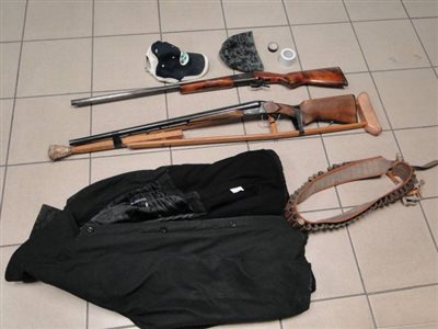 Σε έρευνα που πραγματοποιήθηκε στο σπίτι του, αλλά και στο χώρο εργασίας του, μετά την ταυτοποίηση της ληστείας, βρέθηκε η πατερίτσα με την καραμπίνα και ένα ακόμα όπλο.