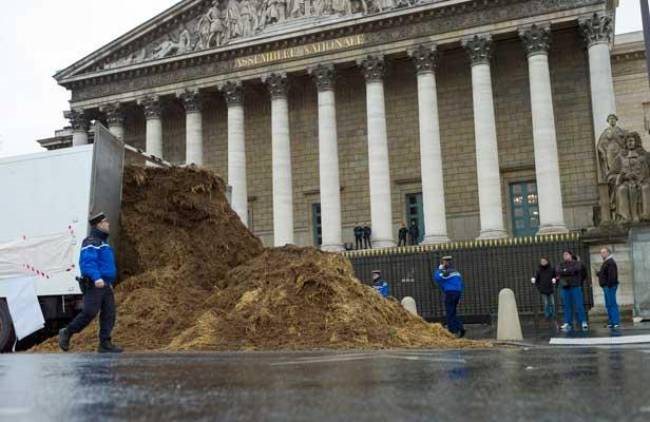 Ένας πολίτης κατέφθασε με ένα φορτηγό, στο οποίο ήταν γραμμένο το σύνθημα «Ολάντ και όλη η πολιτική τάξη, έξω» και άδειασε το πρωί κοπριά μπροστά τη Γαλλική Βουλή. Ο οδηγός του φορτηγού συνελήφθη από την αστυνομία και οδηγήθηκε στο τμήμα του 7ου διαμερίσματος του Παρισιού. Δείτε τις φωτογραφίες: newsbomb